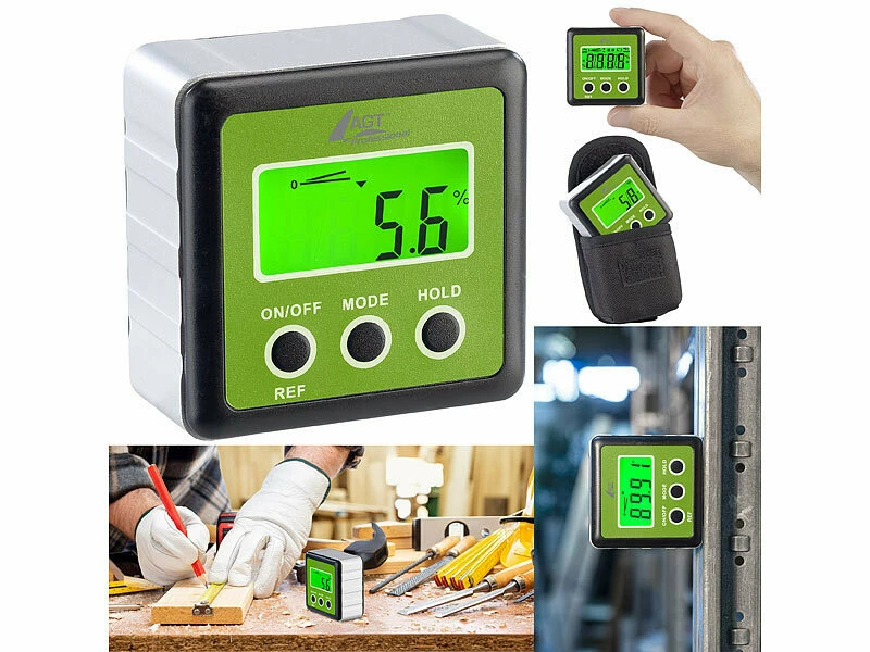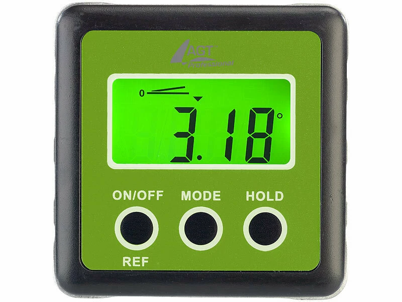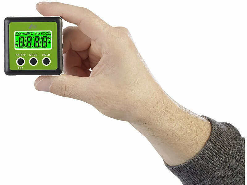 Genau messen, bequem ablesen: Steht der Schrank gerade? Hängt das Bild im Lot? Und wie stark ist eigentlich die Garageneinfahrt geneigt? Ihr neuer Winkelmesser beantwortet Ihnen all das und noch viel mehr! Denn auf dem beleuchteten LCD-Display lesen Sie bequem Neigungen und Winkel ab – ganz nach Bedarf in Grad, Prozent, Millimeter/Meter oder Inch/Fuß.