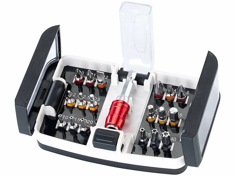Das 18-teilige Set ist die ideale Ergänzung für Ihren Akkuschrauber, den Gelenk-Akkuschrauber AW-3.6.as oder für AW-18.as sowie für den beiliegenden Bit-Halter.