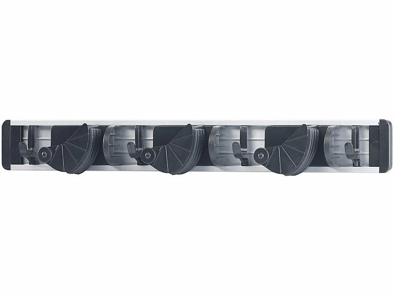 - 2 Ordnungsleiste inkl. je 3 Klemmhaltern, 4 Haken, Montagematerial und deutscher Anleitung – Hakenleiste – Außerdem relevant oder passend zu: Geräte, Hammer, Wischmop, Schaufel, Haushalt, Werkzeug, Organizer, Staubsauger, Aufbewahrung, Bodenwischer, Bodenreiniger, Wandhalterung