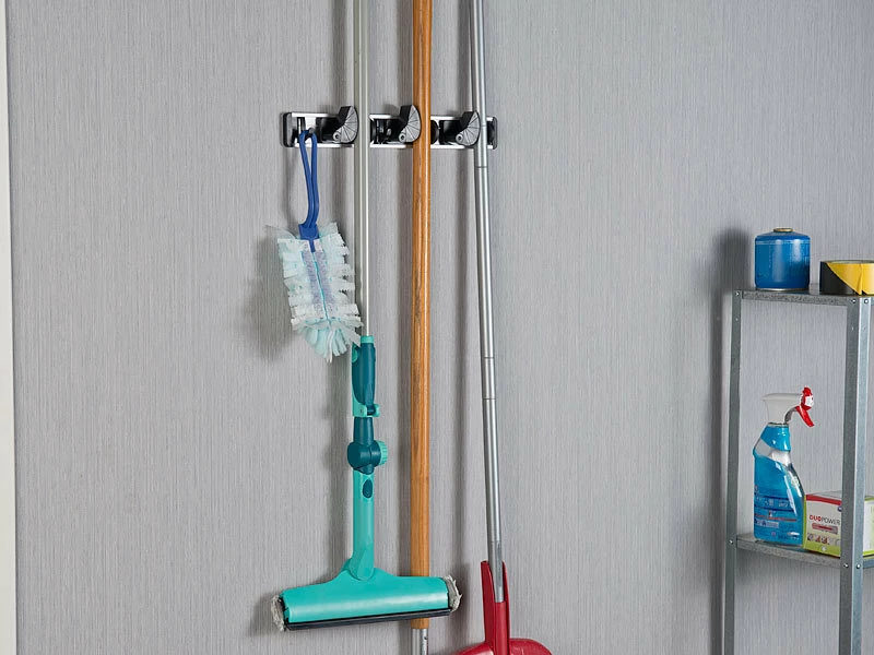 - Je 3 Klemmhalter pro Leiste für Besen, Wischmopp & Co.