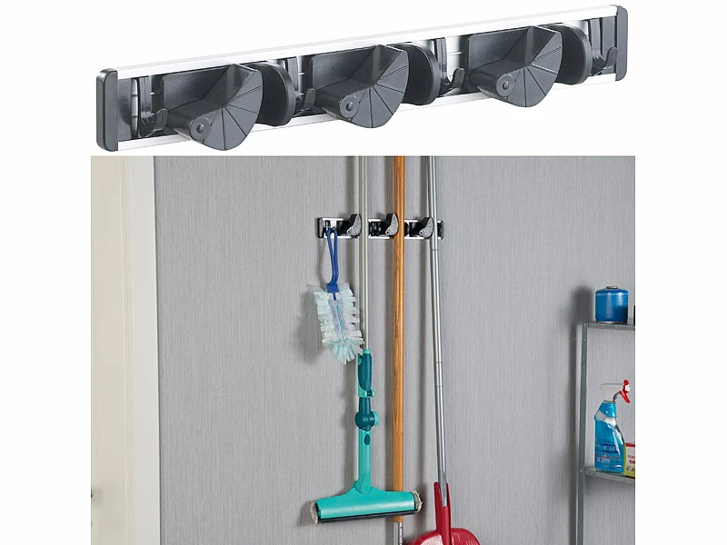 - Je 4 Haken pro Leiste für Kehrblech, Lappen u.v.m.