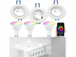 Luminea Einbaulampen-Rahmen:3er-Set Alu-Einbaustrahler-Rahmen, Weiß, Inkl. WLAN-LED-Spots