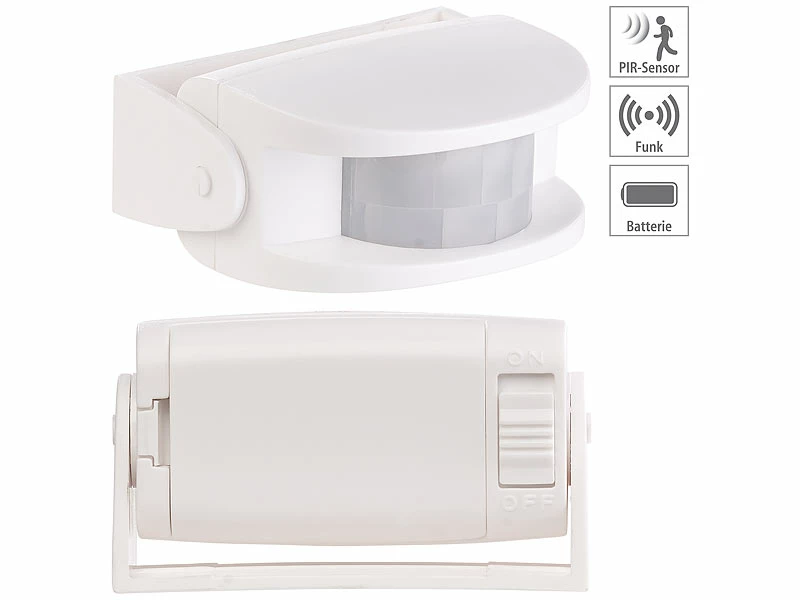 - Maße: 83 x 38 x 67 mm, Gewicht: 85 g (mit Batterien) – Funkklingel mit Bewegungsmelder – Außerdem relevant oder passend zu: außen, Anlage, Glocke, Senioren, wasserdicht, Alarmsysteme, Lichtschranke, Bewegungsmeldern