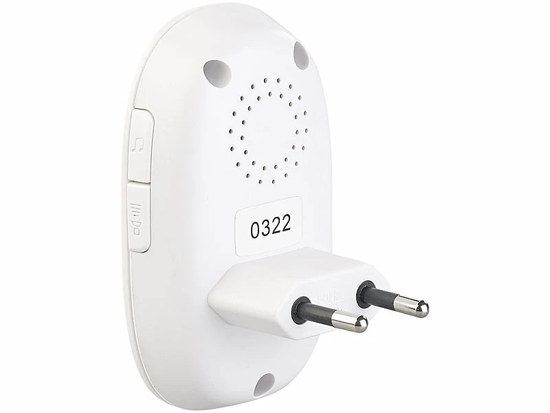 - Stromversorgung Klingeltaster: Knopfzelle CR2032 (bitte dazu bestellen), Empfänger: 230 Volt (Steckdosengerät, Eurostecker)