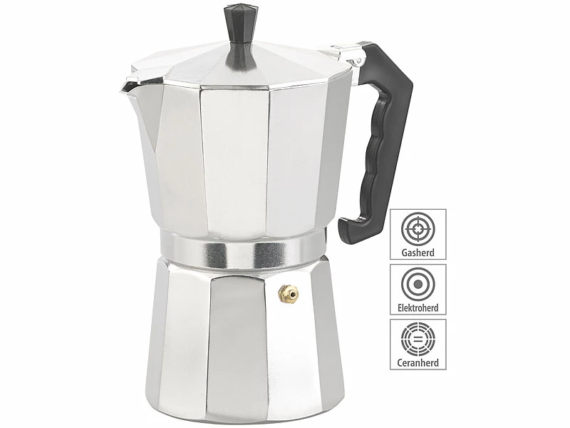Höchster Genuss bei jeder Gelegenheit: Ihr neuer Espresso-Kocher ist für alle Herde mit Gas-, Elektro- und Ceran-Feld geeignet. Und dank seiner kompakten Maße ist er auch der ideale Begleiter beim Camping und im Urlaub.