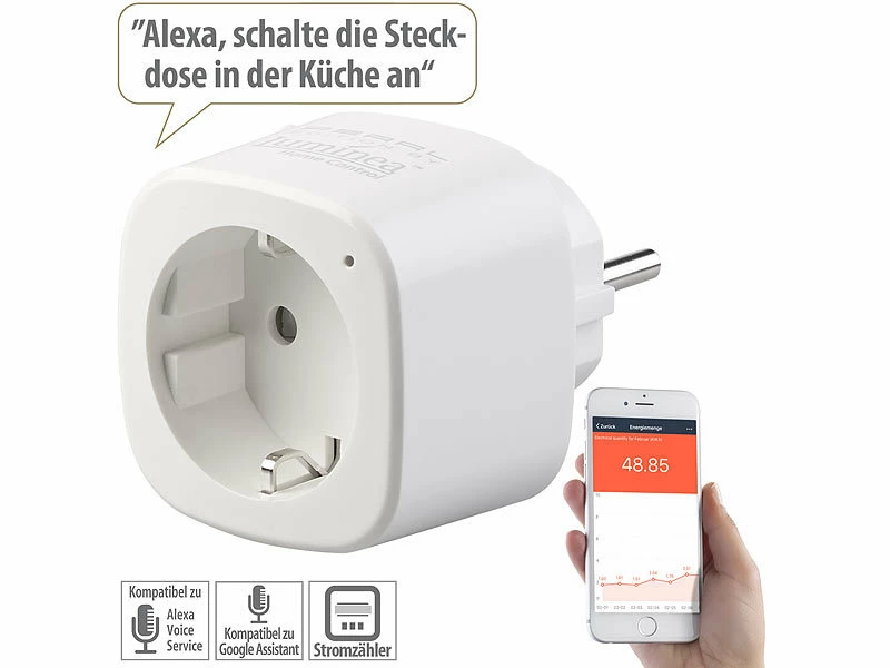 - Kompatibel mit Amazon Alexa und Google Assistant: Steckdose per Echo, Echo Dot, Google Home und kompatiblen Lautsprechern per Sprachbefehl ein- und ausschalten