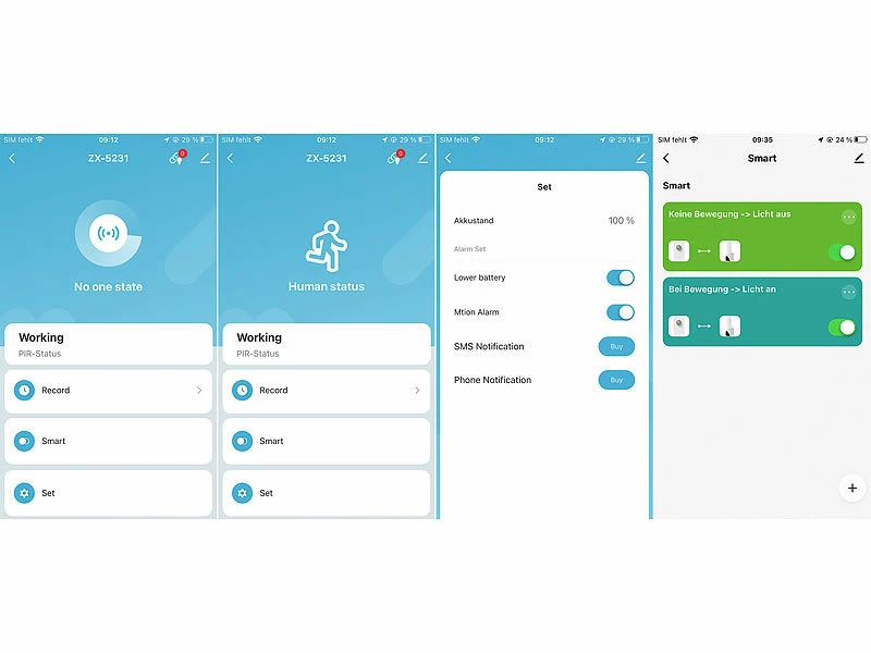 - Automatische Funktionen programmierbar, z.B. zum Schalten mehrerer Geräte gleichzeitig, zum Einschalten des Lichts bei erkannter Bewegung