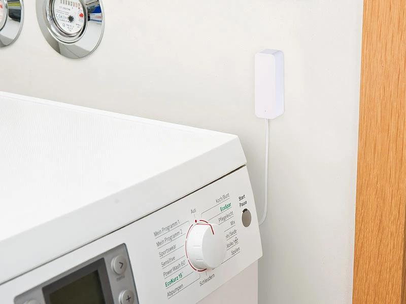 Warnt Sie zuverlässig bei austretendem Wasser z.B. bei Rohrbruch, Schlauchschäden und undichten Stellen an Spülmaschine, Waschmaschine oder Ihrer Heizung. So beugen Sie schlimmeren Schäden vor.