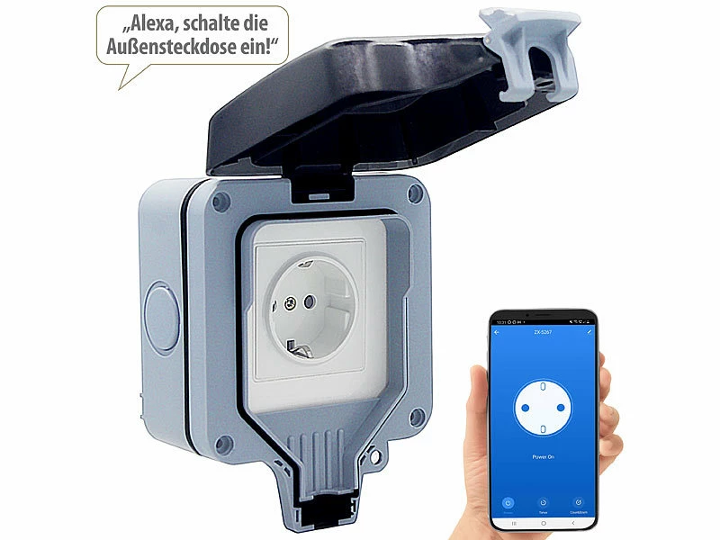 - 2 Outdoor-WLAN-Aufputzsteckdosen SF-520.avs inklusive Montagematerial und deutscher Anleitung – WLAN Steckdosen Zeitschaltuhr – Außerdem relevant oder passend zu: Tablet, Weihnachten