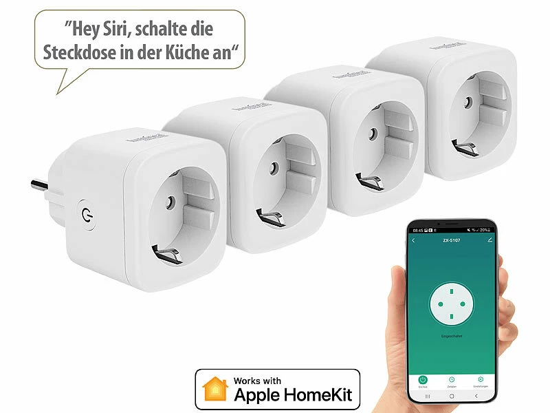 - 4er-Set Apple-HomeKit-zertifizierte WLAN-Steckdosen SF-510 inklusive deutscher Anleitung – WLAN Steckdosen mit App-Steuerung – Außerdem relevant oder passend zu: Zähler, smarte, Stecker