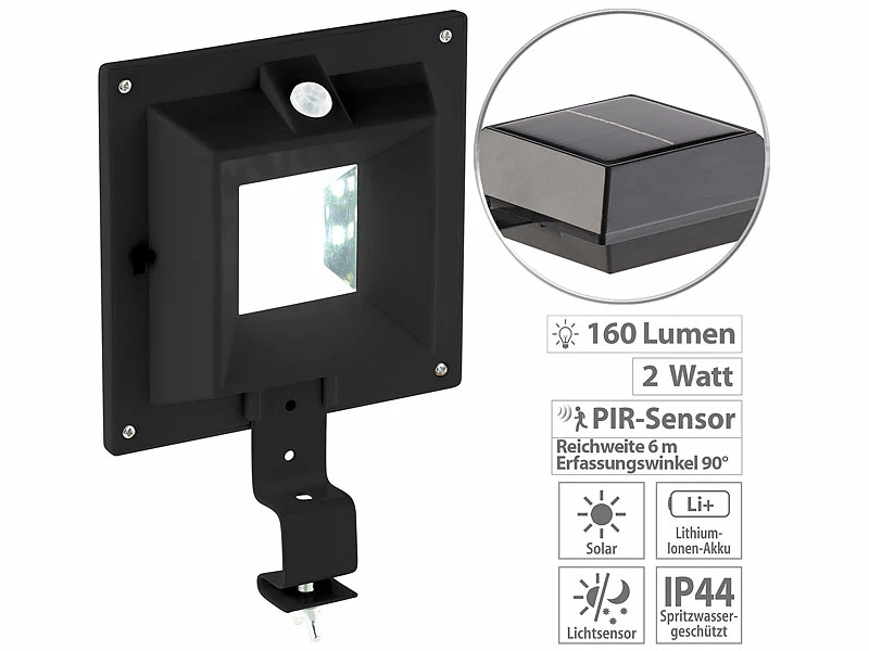 - 2 Solar-Dachrinnenleuchten jeweils inklusive Halterung, Montagematerial und deutscher Anleitung – Solar LED Dachrinnenbeleuchtung – Außerdem relevant oder passend zu: Alarm, Strahler, wasserdicht, Beleuchtung, Überwachung, Briefkasten, Wegeleuchten, Nachtlichter, Bewegung, Nachtlicht Funktion, Leuchtende Hausnummer, Fluter Bewegungsmeldern, Lampe mit Bewegungs Melder