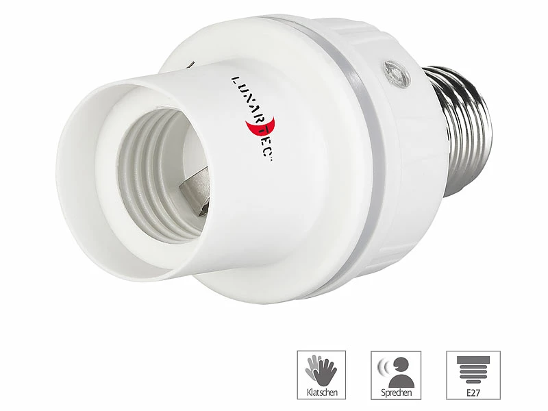 - 2 Lampensockel-Adapter inklusive deutscher Anleitung – Licht Klatschsensor – Außerdem relevant oder passend zu: Switch, Sockel, Sprach, Akustik, Automat, Schrauben, Nachtlicht, Glühbirnen, Lichtschalter, Fernbedienungen, Dämmerungsschalter