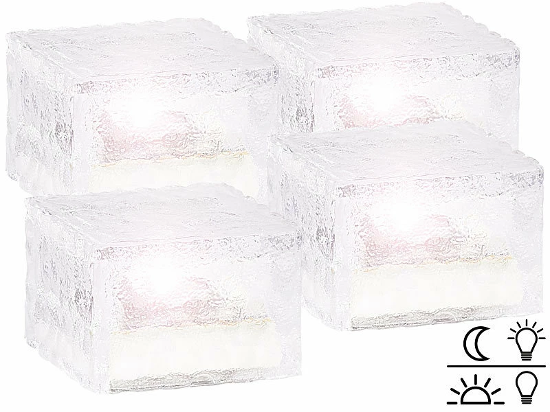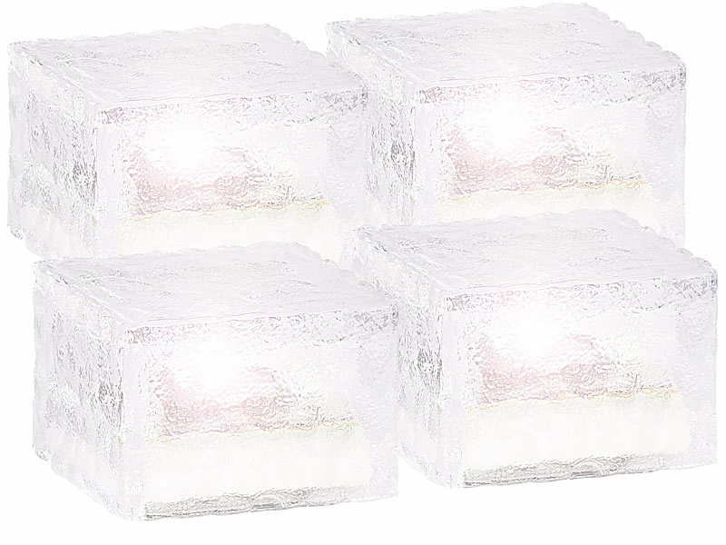 - 4 robuste, wetterfeste Glasbausteine mit integrierter extra-heller LED