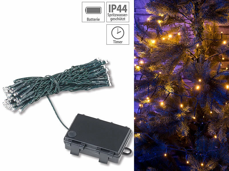 - Länge: 5 m, Länge Zuleitungskabel: 2 m, Maße Batteriegehäuse: 78 x 65 mm – Lichterkette mit Timer Outdoor – Außerdem relevant oder passend zu: Kette, Party, Garten, Leuchten, Terrasse, aus Draht, Weihnachten, Batteriefach, Zeitschaltuhr, Batteriehalter, batteriebetrieben, Weihnachtsbaumbeleuchtung kabellos