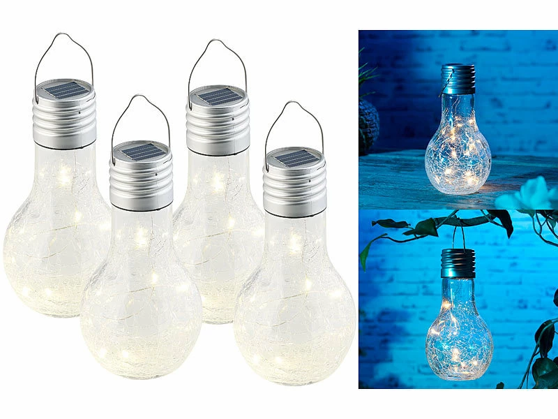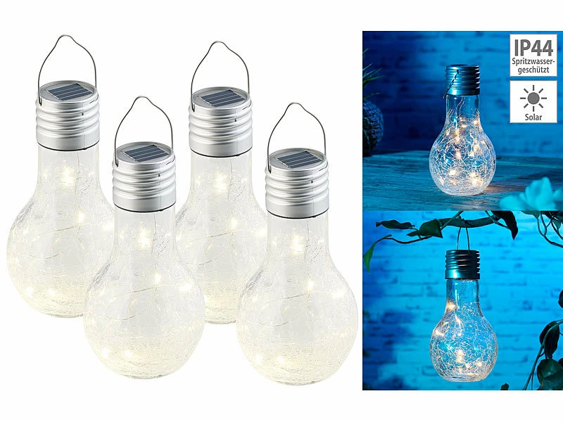 - 4 Solar-LED-Glühbirnen inklusive deutscher Anleitung – Solar Glühbirnen – Außerdem relevant oder passend zu: außen, Balkon, Lichter, Leuchte, Leuchten, Terrasse, Gartendeko, Lichterkette, Lichterketten, Dämmerungsschalter, Garten Beleuchtung
