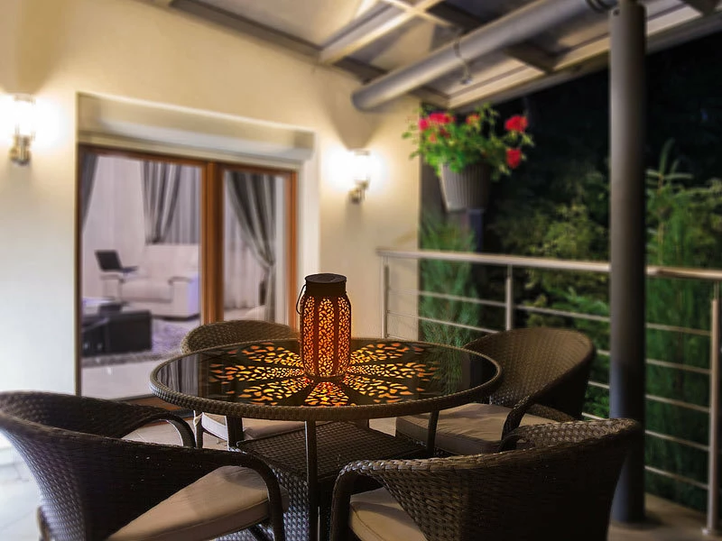 Ihr smartes Stimmungslicht für den Abend auf Balkon, Terrasse & im Garten: Stellen oder hängen Sie die Laterne einfach auf. Der Dämmerungssensor schaltet das Licht bei Dunkelheit automatisch ein!