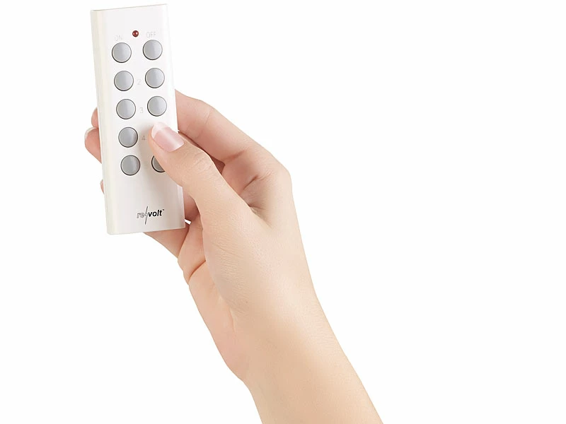 - 5 230-Volt-Steckdosen, jeweils einzeln per Fernbedienung schaltbar