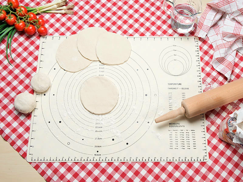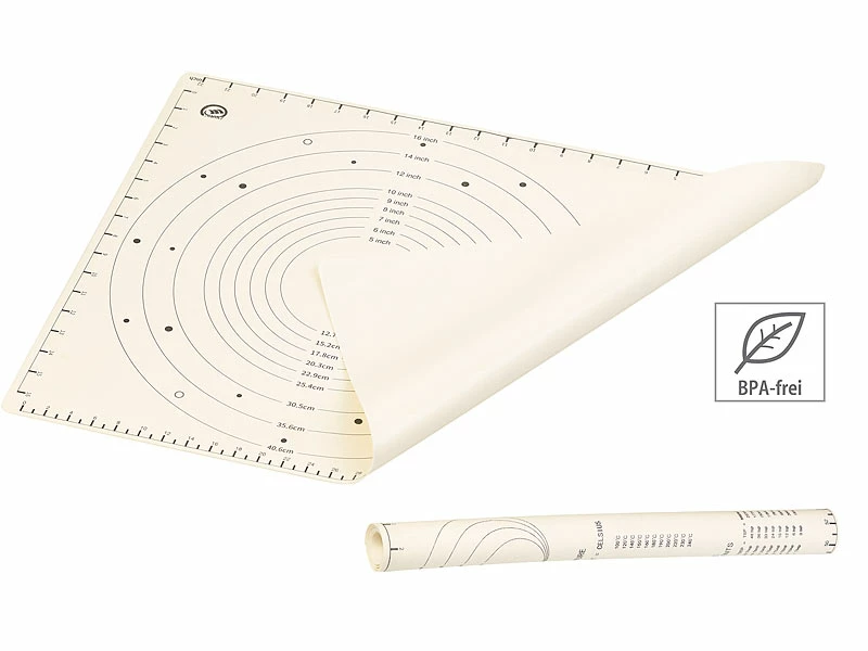 - Maße: jeweils 60 x 46 x 0,2 cm, Gewicht: 404 g – Silikonunterlage – Außerdem relevant oder passend zu: Roll, Pasta, Küche, Knete, Pizza, Backen, Macarons, Backform, Nudelholz, Plätzchen, Schablone, Backformen, Teigroller, Backpapier, Kühlschrank