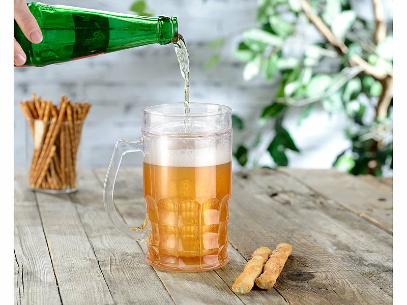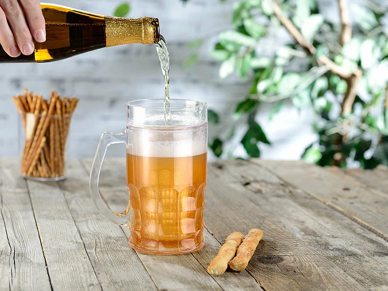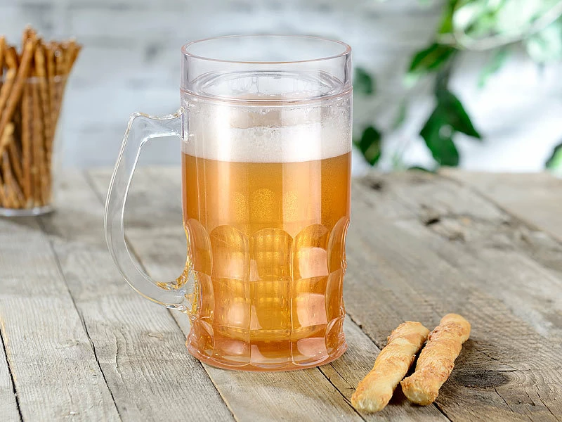 Kühlt Bier, Soft-Drinks und Wasser extra lange – auch im heißesten Sommer. Schon nach einer Stunde im Eisfach: Ihr Bierkrug mit integriertem Kühl-Akku sorgt für ca. 30 Minuten Kühlung.