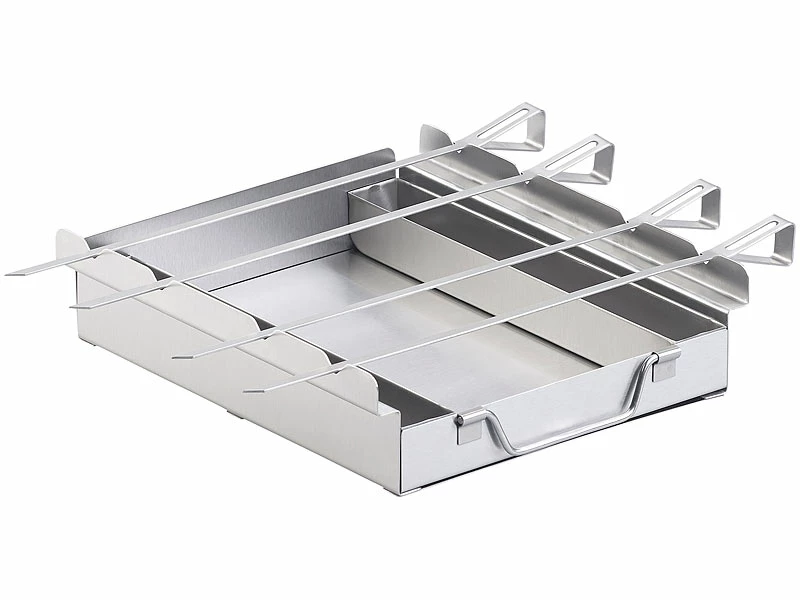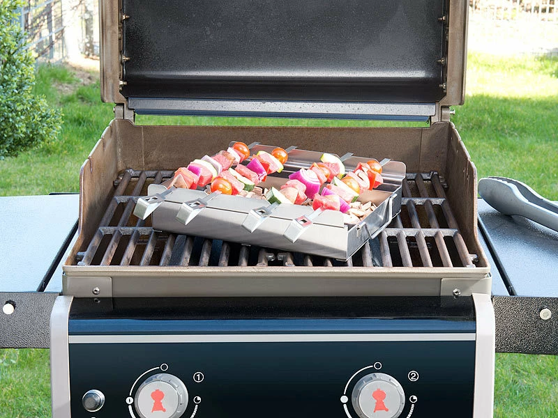- Perfekt für Schaschlik-Spieße: einfaches Drehen und Wenden dank Halterung