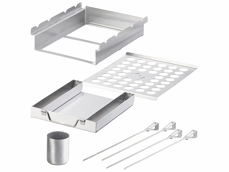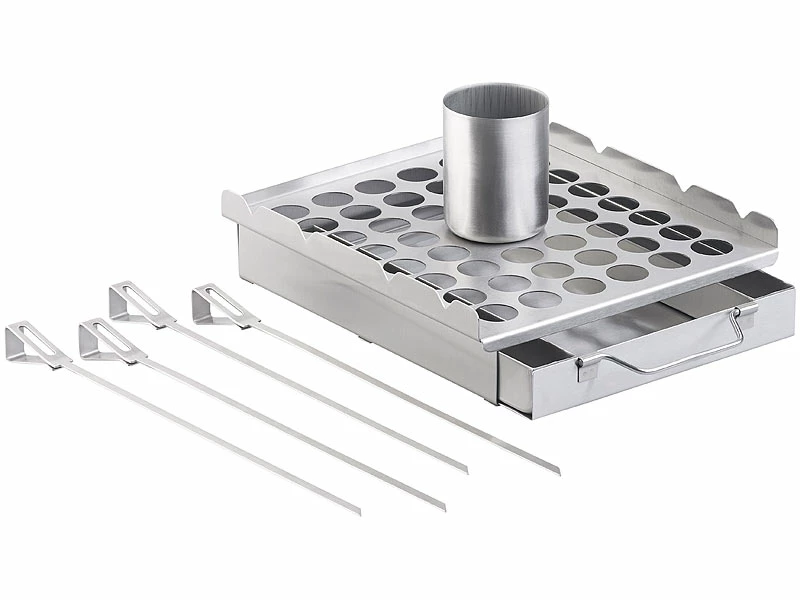 - Multifunktional einsetzbar: als Hähnchenbräter, Räucherbox, Spießhalter, Gemüse-Grillständer und Grillrost