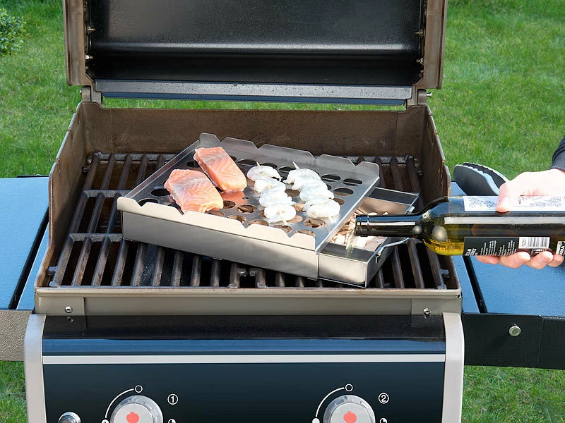 Grill-Vielfalt vom Feinsten: Ab sofort brutzeln Sie mehr als nur Steaks und Würstchen! Mit dem praktischen BBQ-Aufsatz sorgen Sie für leckere Abwechslung auf Ihrem Teller. Stellen Sie ihn dafür einfach auf Ihren Grill – schon kann das große Schlemmen beginnen!