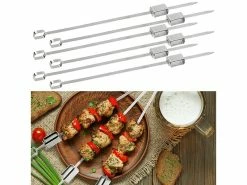 Genießen Sie auch Schaschlik & Co.: Ob Fleisch oder Gemüse – die stabilen Spieße halten Ihr Grillgut perfekt zusammen. Und dank praktischer Halterung im Grill-Aufsatz liegen sie sicher und lassen sich problemlos drehen und wenden – für perfekte Ergebnisse.
