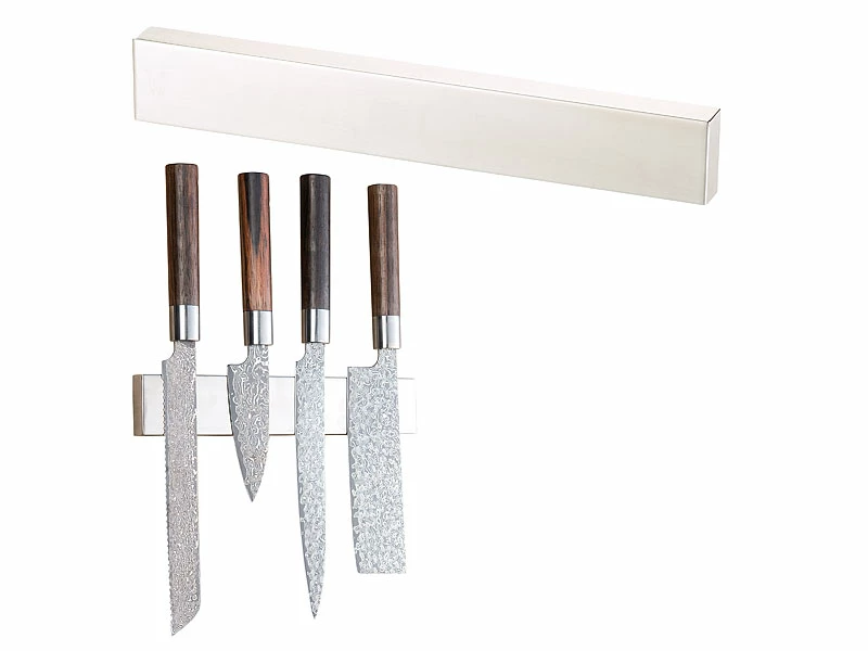 Das passende Küchenmesser immer griffbereit: Beim Kochen benötigen Sie häufig verschiedene Messer für Fleisch, Gemüse u.v.m. Jetzt sparen Sie sich dabei den Weg zu Schubladen und Schranktüren: Mit einem Griff an Ihre Wand-Leiste haben Sie das gewünschte Messer immer gleich zur Hand.