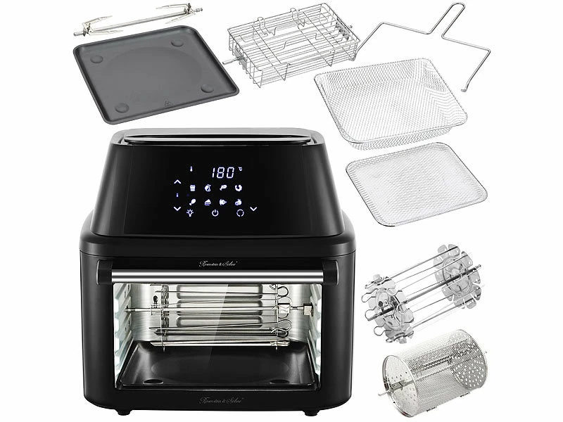 - Heißluft-Fritteuse inklusive Drehspieß, Drehkorb, Fischkorb, Backblech, Entnahme-Hilfe, 2 Scheiben, 2 Gabeln, 3 Gitterblechen, 6 Schrauben, 8 Spießen und deutscher Anleitung – Mini Ofen – Außerdem relevant oder passend zu: Herd, Pizza, Kocher, Kochen, Toaster, Automat, Popcorn, Geschenk, Mikrowelle, Thermometer, Multikocher