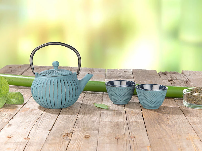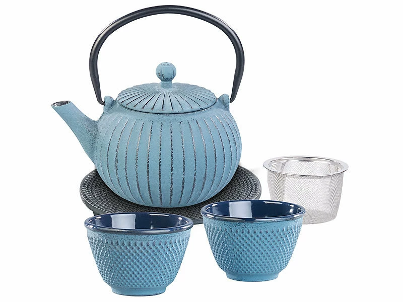 Tee wie vom Zeremonien-Meister: Ihr blaues Tee-Set steht ganz in der Tradition eines asiatischen Tetsubin-Teeservices. Holen Sie sich jetzt einen Hauch authentischer Teezubereitung nach Hause, so wie sie in Fernost seit Jahrtausenden praktiziert wird.
