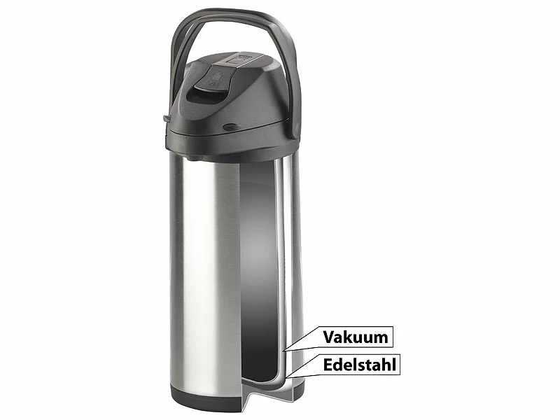 Bequeme Handhabung: Durch die praktische Einhand-Pump-Funktion ist das Bedienen der Kanne ein Kinderspiel. Schon mit wenigen Pumpstößen ist Ihre Tasse gefüllt. Und mit dem stabilen Tragegriff transportieren Sie das Behältnis immer dorthin, wo Sie es brauchen.