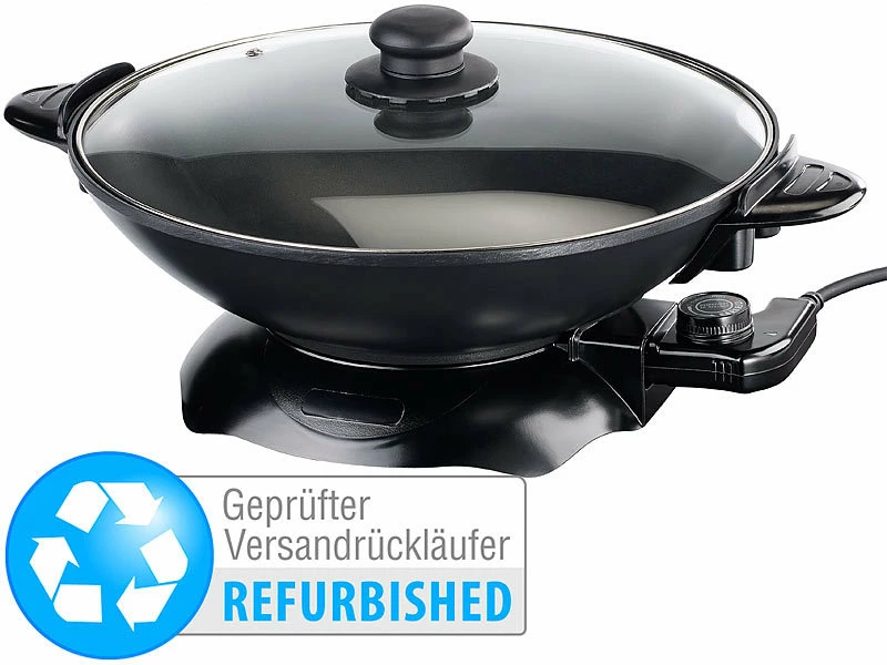 - Elektrischer Wok inkl. Deckel, Gerätestecker mit Stromkabel und deutscher Anleitung