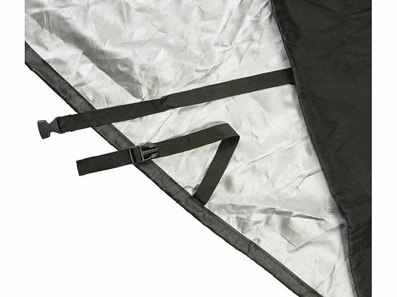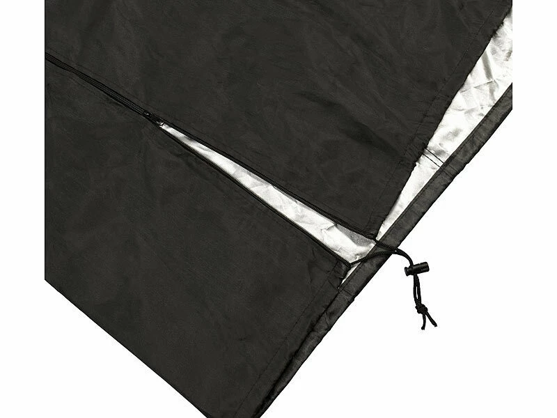 Sicherer Halt: Dank Kordelzug am Saum hält diese Abdeckung bombensicher auch bei stürmischem Wetter. Einfach überstülpen, Reißverschluss schließen und festzurren.