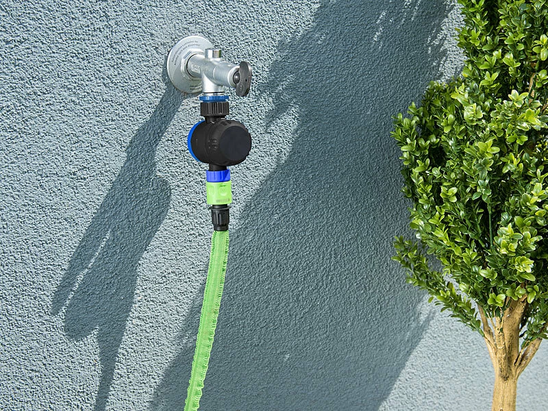 - Bewässerungs-Schaltuhr inklusive Schlauch-Schnell-Kupplung, Wasserhahn-Verbinder, Siebeinsatz und deutscher Anleitung – Wasserzeitschaltuhr Garten – Außerdem relevant oder passend zu: Uhr, Teich, aussen, Urlaub, Pflanzen, Wasseruhr, mechanisch, Wasseruhren, Gewächshaus, Perlschlauch, Tropfschlauch, Rasensprenger, Perlschläuche, Gartenschlauch, Wasserverteiler, Bewässerungsautomat