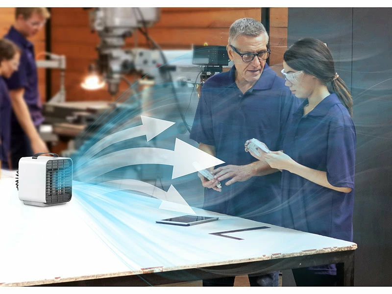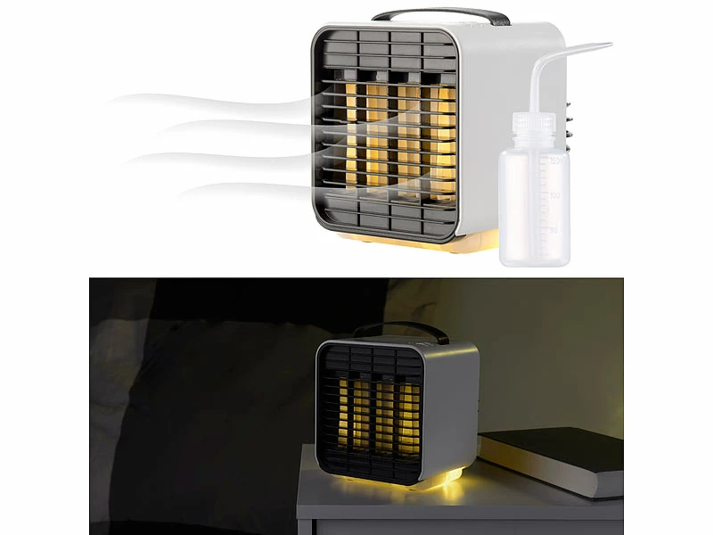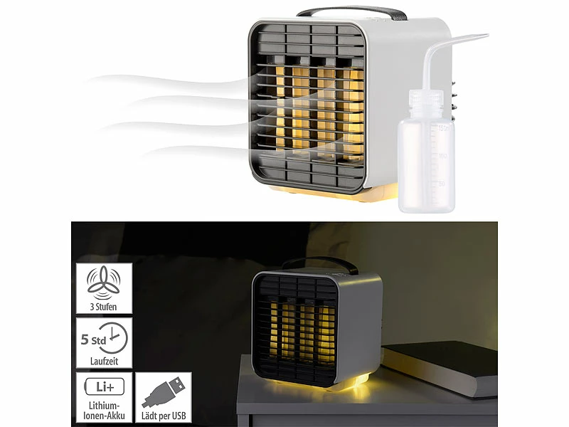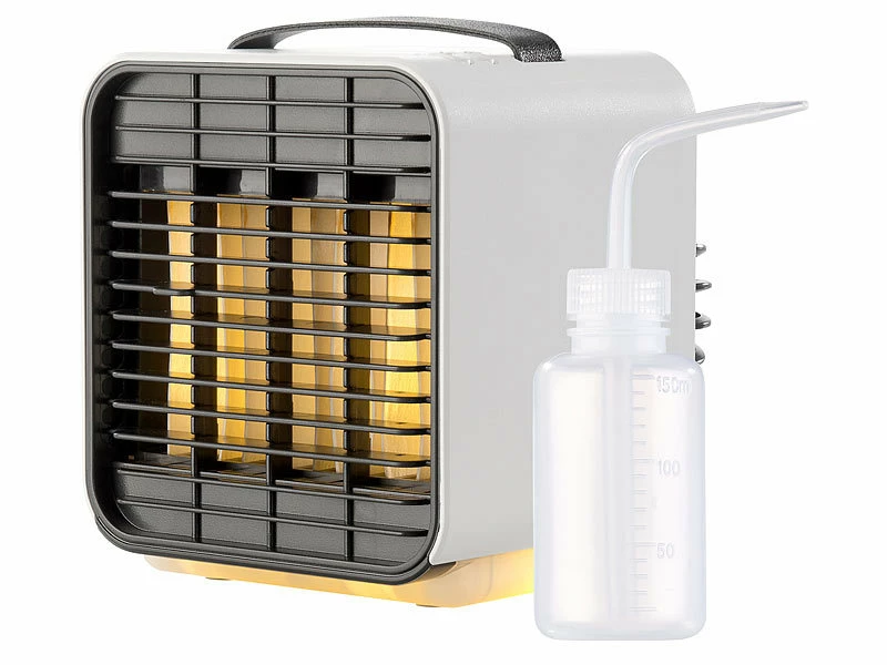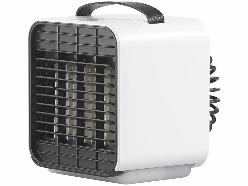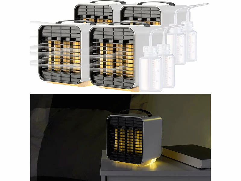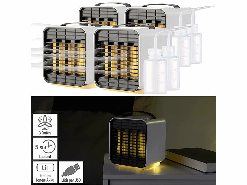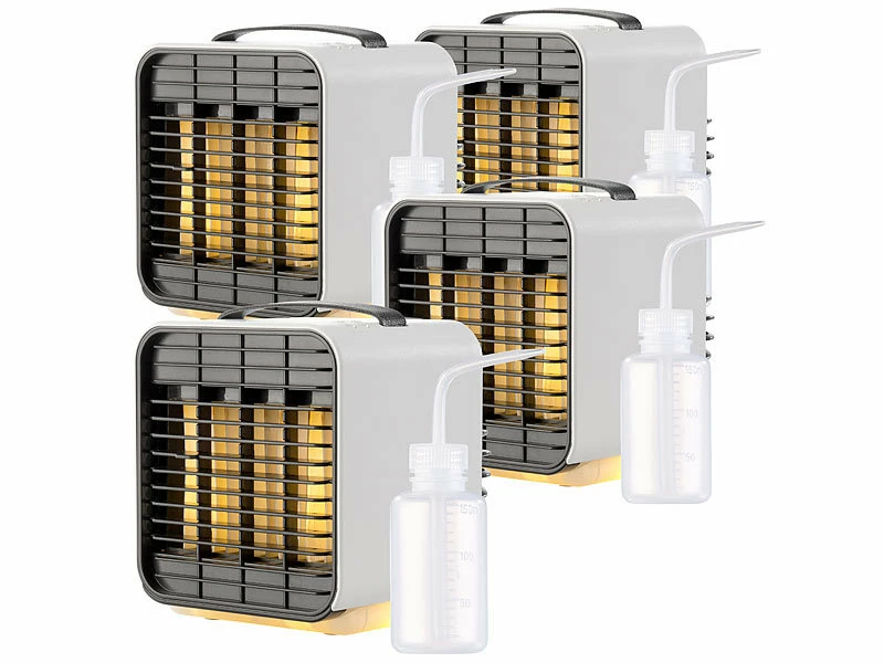 - 4 Tisch-Luftkühler LW-100 jeweils inklusive USB-Ladekabel, Flasche und deutscher Anleitung – Mobiler Mini Akku Luftkühler – Außerdem relevant oder passend zu: Kühl, Auto, Solar, Klima, Cooler, Mobiler, Powerbank, Elektrische, Klimaanlage, 12V, Handventilator, LED Batterie Leuchten