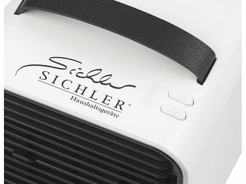 - Luftkühler-Funktion: Verdunstungs-Kälte durch befeuchtbare Plättchen, austauschbar