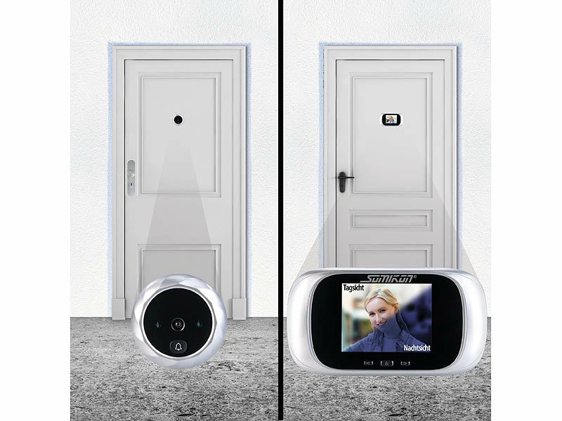 Kaum zu erkennen: Dieser Türspion-Kamera erscheint von außen wie ein normales Guckloch. Doch innen offenbart er Größe – auf 7,1 cm Bilddiagonale zeigt Ihnen der praktische Bildschirm, wer gerade vor der Tür steht.