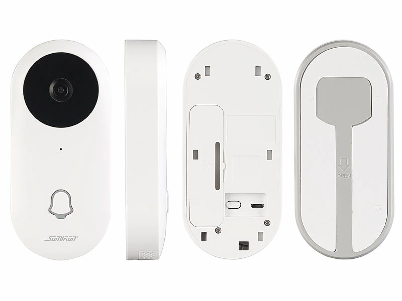 - Video-Türklingel inklusive Akku, Halterung, Montagematerial, USB-Ladekabel und deutscher Anleitung