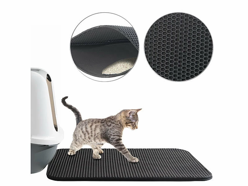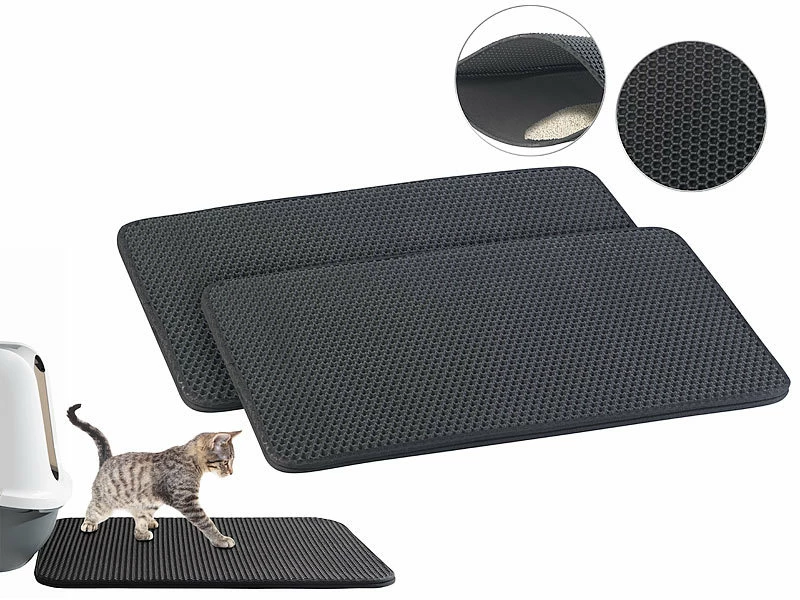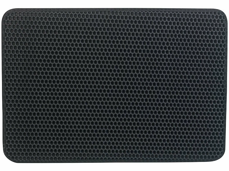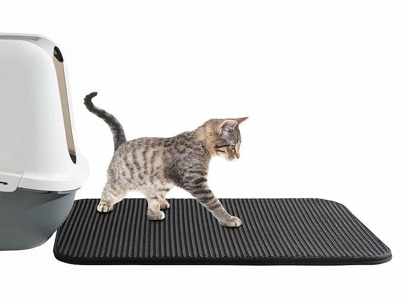 Doppellagige Matte: Die obere Schicht mit Bienenwaben-Struktur fängt Partikel von den Katzenpfoten ab. Die untere Schicht ist absolut wasserdicht und hält den Boden zuverlässig trocken.