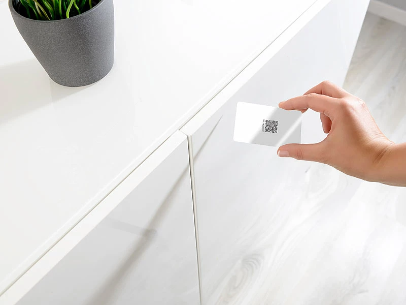 Schlüsselfrei dank RFID-Karte und kostenloser App: Zum Entriegeln nutzen Sie einfach Ihr Smartphone. Und dank einstellbarer Verriegelungs-Automatik brauchen Sie nur die Schublade oder Tür zu schließen!